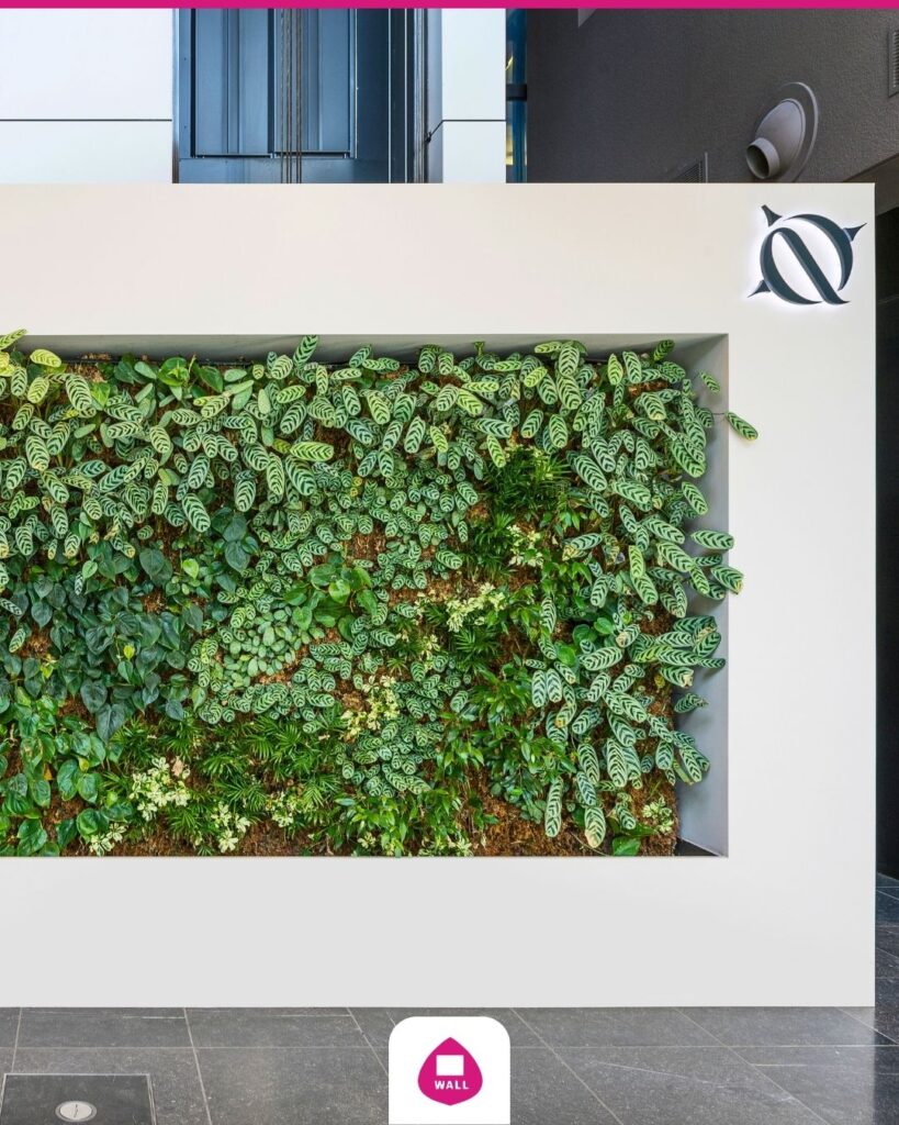The green facade was integrated into the reception area of an existing building where the previous design no longer matched the expectations of visitors and customers.