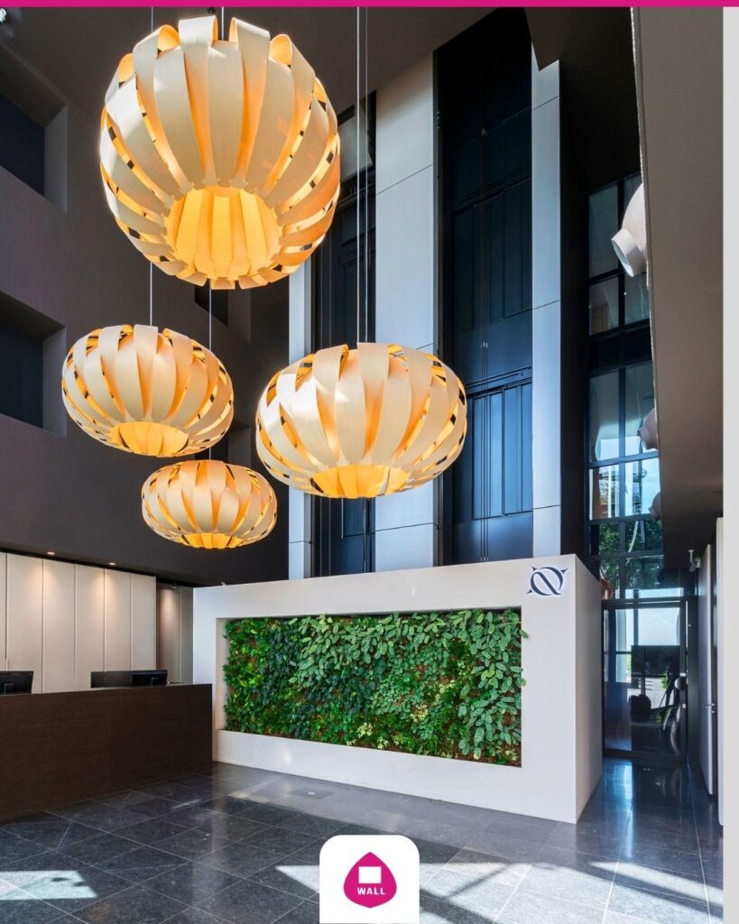 Green facade in reception reinforces experience and comfort